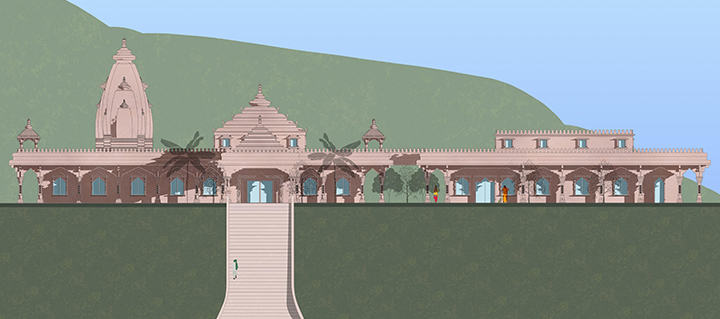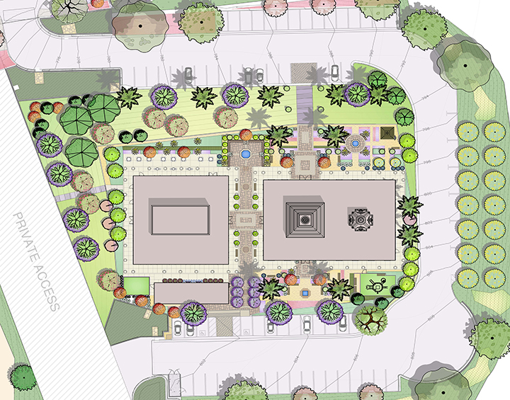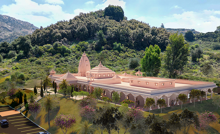 PWA developed Conditional Use Permit (CUP) planning documents for a Temple complex as part of design services to ISKCON of Escondido. The Temple was designed in the traditional Vedic style of India, based on the Owner’s concepts, elevations and floor plans. The 3-acre project includes a 6500 SF temple; a 5100 SF dining and residential hall; a children's play area; traditional gardens; water features and fountains; fire mitigation; irrigation system; parking and public right of way improvements. There are also improvements being done to provide services for designated residential plots adjacent to the temple.